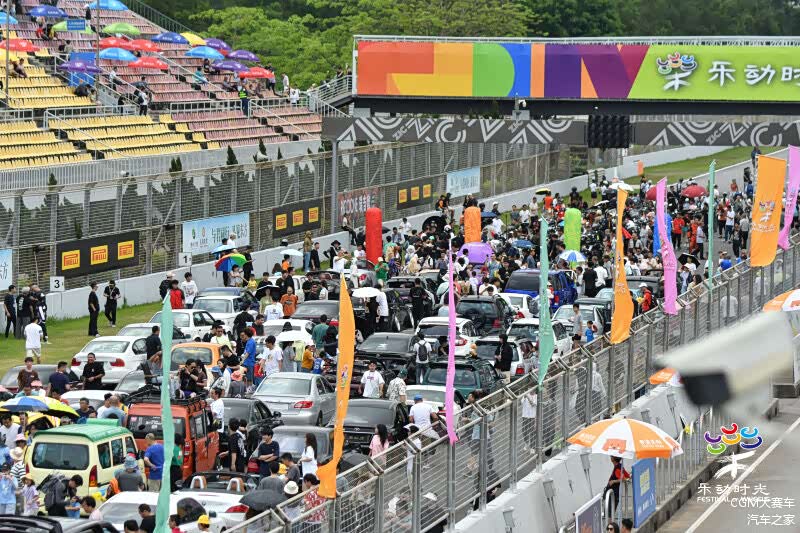 所以,这个周未我们在赛车场看到了一片热闹的场景,有赛道英雄的赛车轰鸣,有个性车展,也有单车骑行、赛道巡游、音乐节表演,还有儿童天地等等,无论是专业赛车手,还是改装车爱好者,甚至是普通市民带着孩子也能够在这里找到乐趣。简单来讲,乐动时光是港澳珠大湾区市民度过快乐周末的一个好选择。
