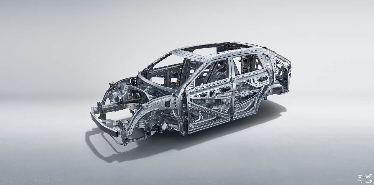 其次,整车高强度钢占比超过64%。其中,核心乘员舱骨架100%采用超高强度钢,A柱、B柱、门槛、中通道等关键部件热成型钢比例达到18%,其强度等级跟潜艇壳体是同样的用材级别。