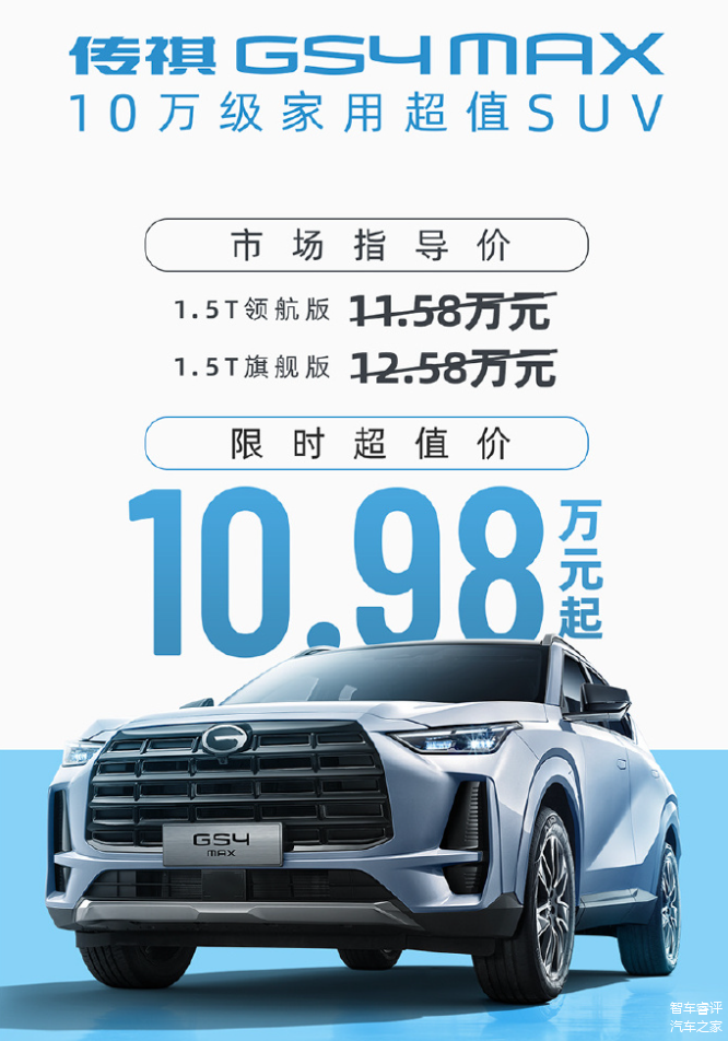 传祺GS4 MAX共有两款配置,分别是指导价11.58万元的领航版和指导价12.58万元的旗舰版。