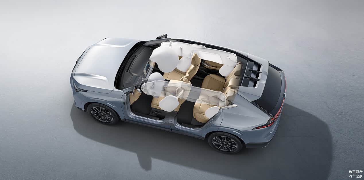 首先,新车采用了2个前排正面安全气囊+2个前排侧安全气囊+2个贯穿式侧气帘+2个后排侧气囊的8安全气囊配置,这绝对是同级车型中的最强配置,可以说保证了乘员的全方位安全。