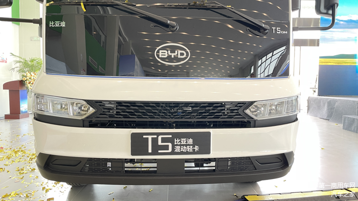 比如,比亚迪T5DM采用的黑底大镜面设计,与前挡风玻璃融为一体,明显有别于传统油改电房车的造型和前脸,更具科技感。而在黑色玻璃面板的下方,比亚迪T5DM的大灯组与中网连成一条线且略有凸出,显示出更强的视觉层次感,尤其,两侧门板上高高扬起的凸出棱线,让驾驶室显示出俯冲的姿态,速度感拉满。
