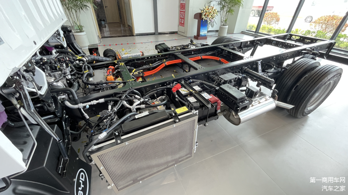 具体来说,在比亚迪T5DM的底盘上,其电池采用中置布局的方式,优化了整车的重心分布,对于车辆的行驶稳定性大有裨益,而底盘悬架,前3后5+6片钢板弹簧设计,加上规格为7.00R16的轮胎,以及保证车身强度基础上的大量轻量化设计,T5DM不仅有着优于同级混动底盘车型的承载能力,上装的舒适性也大为提升。
