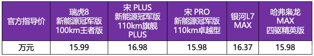 逢春不游乐,但恐是痴人。正可谓春风得意马蹄疾,汝欲游出范儿,必先利其蹄。现代人的春游更加多元,对于用户来说,一台能够解决出行痛点的混动SUV才是王道。从目前热门混动SUV来看,瑞虎8新能源冠军版100km王者版、宋PLUS新能源冠军版110km旗舰PLUS、宋PRO新能源冠军版110km卓越型、银河L7 MAX、哈弗枭龙MAX四驱精英版,在动力、快充、空间以及配置上,都有不俗的实力。所谓针尖对麦芒,这几款车究竟谁更全能,接下来我们不妨将它们同台竞技,看看谁更具冠军品质,成为用户踏青首选。
