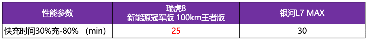 自驾春游,如果不能进行快速补能,那将会浪费相当多的时间在高速公路的充电站上:要先从路线上选择有充电桩的服务区,抵达后大概率还需要排很长时间的队。好不容易排上号,结果充电桩仅支持慢充,然后不得不插上,被迫等待。这样的充电体验,用户都累觉不爱。而瑞虎8新能源冠军版搭载了奇瑞混动专用交直流车载充电器,可在25分钟内从30%充至80%,相比银河L7 MAX电量从30%充至80%需要30分钟,更能让用户出行补能0焦虑。此外,瑞虎8新能源冠军版得益于混动专用三元锂电池的加持,带来了油电综合续航可达1000km+的硬核表现,随时都能满足用户跨省旅行,奔向美好的诗与远方。
