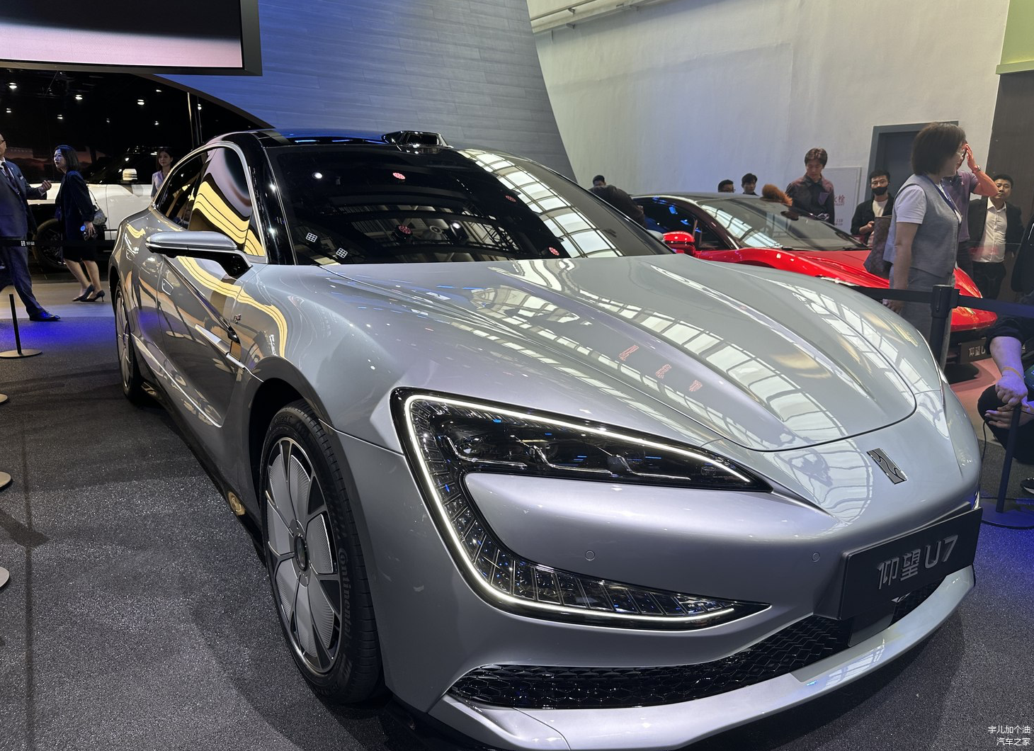 外观上,仰望U7的前脸造型其实看上去和仰望U9非常相似,夸张的C型大灯组,LED日间行车灯包围在周围,上方是远近光一体式灯组,发动机盖上拥有不错的线条,用来刻画出向前俯冲的态势,毕竟这是一台性能强大的新能源车,要设计出运动的气势。新车车顶和翼子板两侧均配备了激光雷达,可以说智能驾驶辅助方面的配置不会很弱。