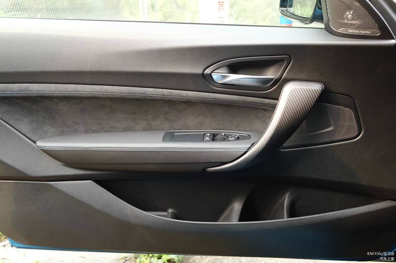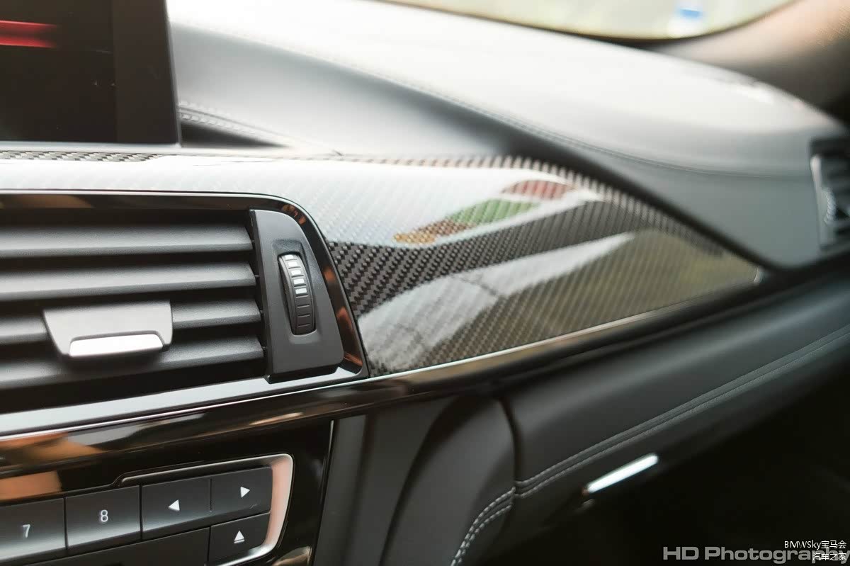 首先这标配的哑光碳纤维内饰条就让我倒足了胃口,宝马官方叫“多孔碳纤维”,哦对,这还真的好多孔,从侧面看过去,参差不齐的缝隙清晰可见,我知道这质量是没问题的,但看着实在没法买单。如果你要定M2,准备好换内饰条的钱,必须的。