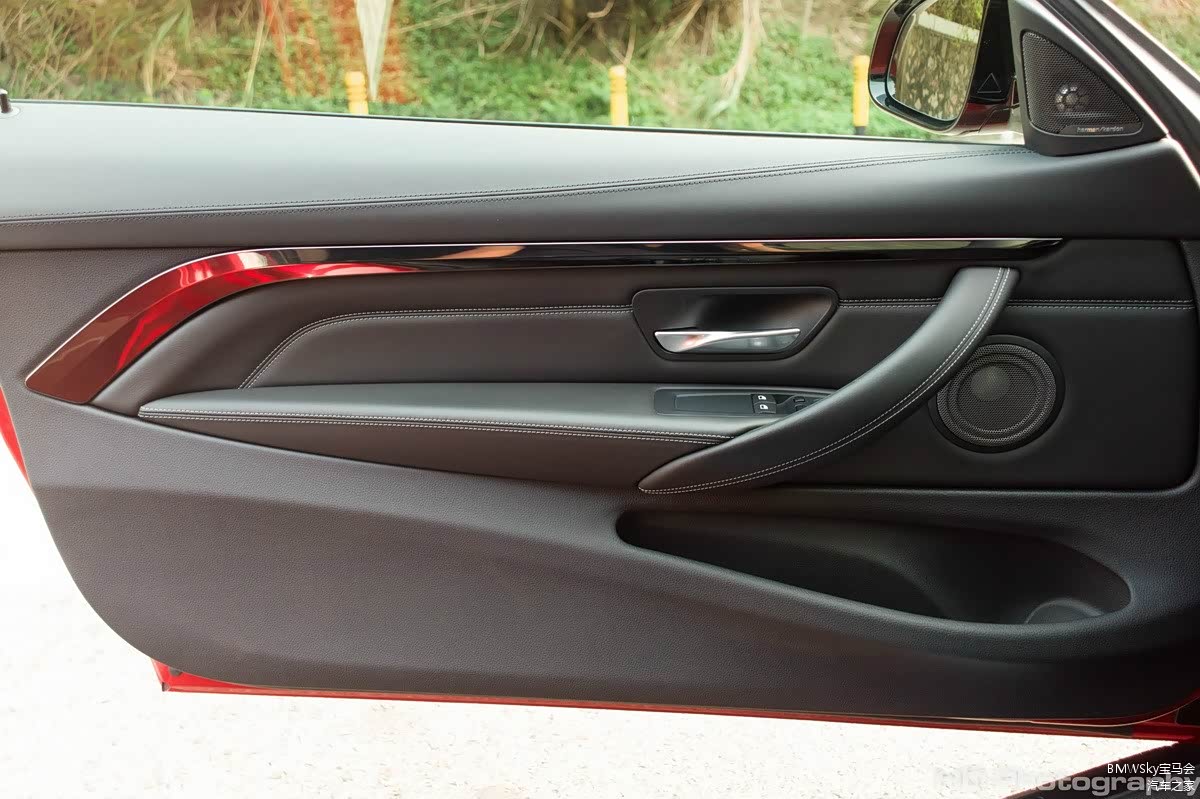 M2的门板储物空间,比M4的规划更合理,还有一整块的Alcantra翻毛皮,碰到就觉得很舒服!而M4的高亮黑饰条则非常显眼好看!