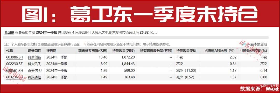 如葛卫东,一季度末公开持仓了4家公司,观察个股所属概念,全部来自科技领域,移远通信涉及英伟达产业链、兆易创新涉及汽车芯片概念、科大讯飞涉及脑机接口领域、奇安信涉及AI模型赛道(见图1)。