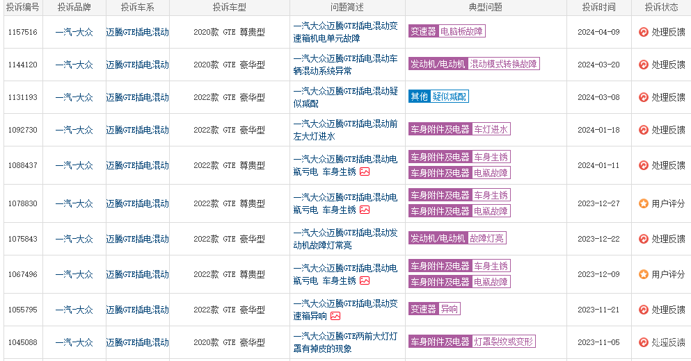 采用1.4T的插电式混合动力系统,但是纯电续航仅有63km,月销能够达到1000辆左右。迈腾GTE版本并不推荐大家入手,其一纯电续航较短;其二的价格、入手门槛偏高;其三迈腾GTE版本的稳定性并不是特别好,尤其是车质网投诉内容均为车身附件及电器、油车上的异响在插混上的迈腾也没拉下,智能化上更是一言难尽。