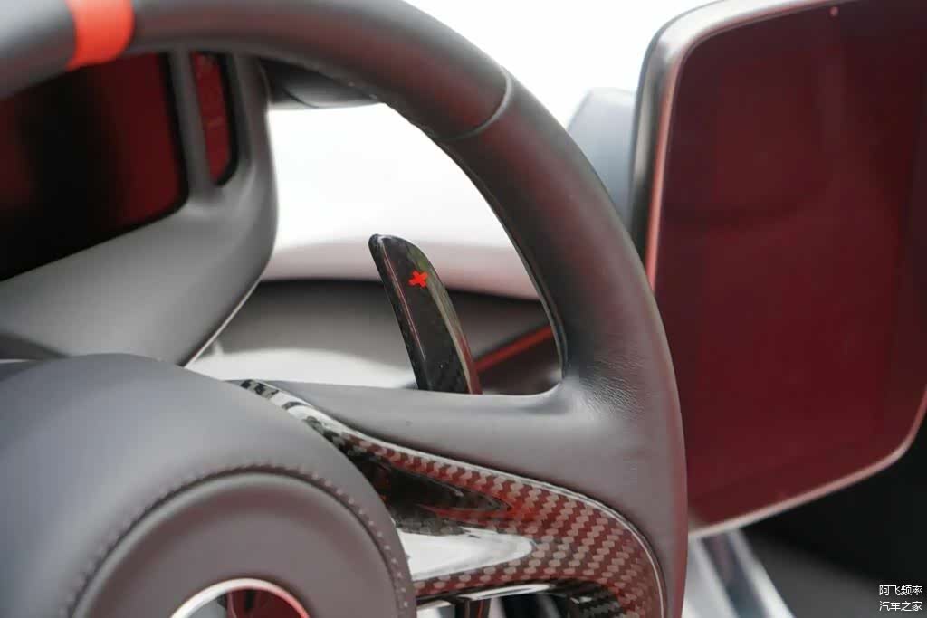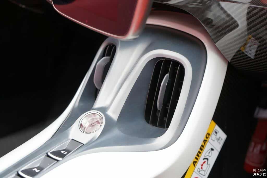 内饰部分,也有很多值得欣赏的亮点。座椅采用了红色真皮装饰,配以白色滚边,与车漆外观进行了呼应的同时,也营造出很强的运动氛围。除此之外,车内除了大量碳纤维装饰外几乎没什么额外的东西,本质上来说也保留了以驾驶员为中心的简约美感。