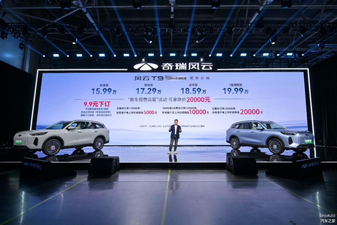 奇瑞汽车股份有限公司常务副总经理张国忠表示,2024年是奇瑞集团新能源战略开花结果、火力全开的一年。相信到了二季度,奇瑞集团新能源增速还会继续“翻番”,进入新能源第一阵营。自去年11月份正式发布以来,奇瑞风云持续进阶,推出了风云A8和A8远航版,而今天风云T9也将开启SUV的新篇章。未来风云序列将全面覆盖混动、增程、纯电市场,2年内推出11款全新车型,涵盖SUV、SD、MPV品类,充分满足A0到C级的不同市场需求。奇瑞汽车股份有限公司副总经理李学用进一步解释,目前主销风云A8、风云T9、T10,今年还会全新迭代风云A8,明年还会推出风云A9、T11,以及储备了4款车型;在传统燃油车有1000家网络,风云有400家网络,未来将做到500家左右, 1500家渠道共同发力,因此对在年底做到月销3万台以上,全年20万的目标充满信心。