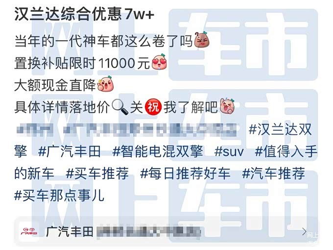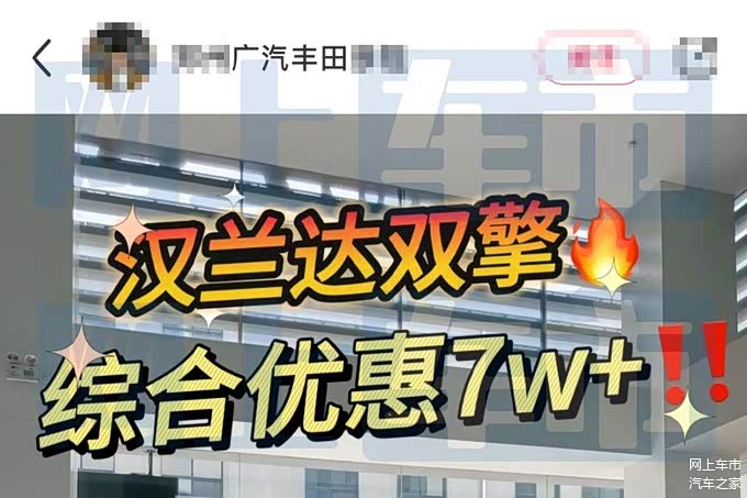 销售员表示,现款汉兰达双擎混动版综合优惠超7万,以指导价26.88万元的两驱精英版(5座)为例,惠后裸车价还不到20万元。