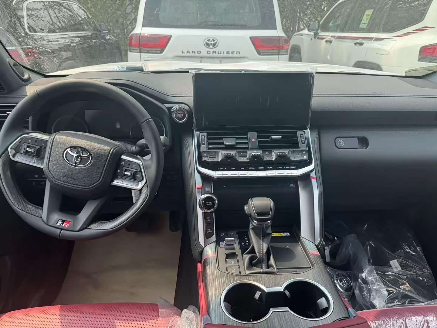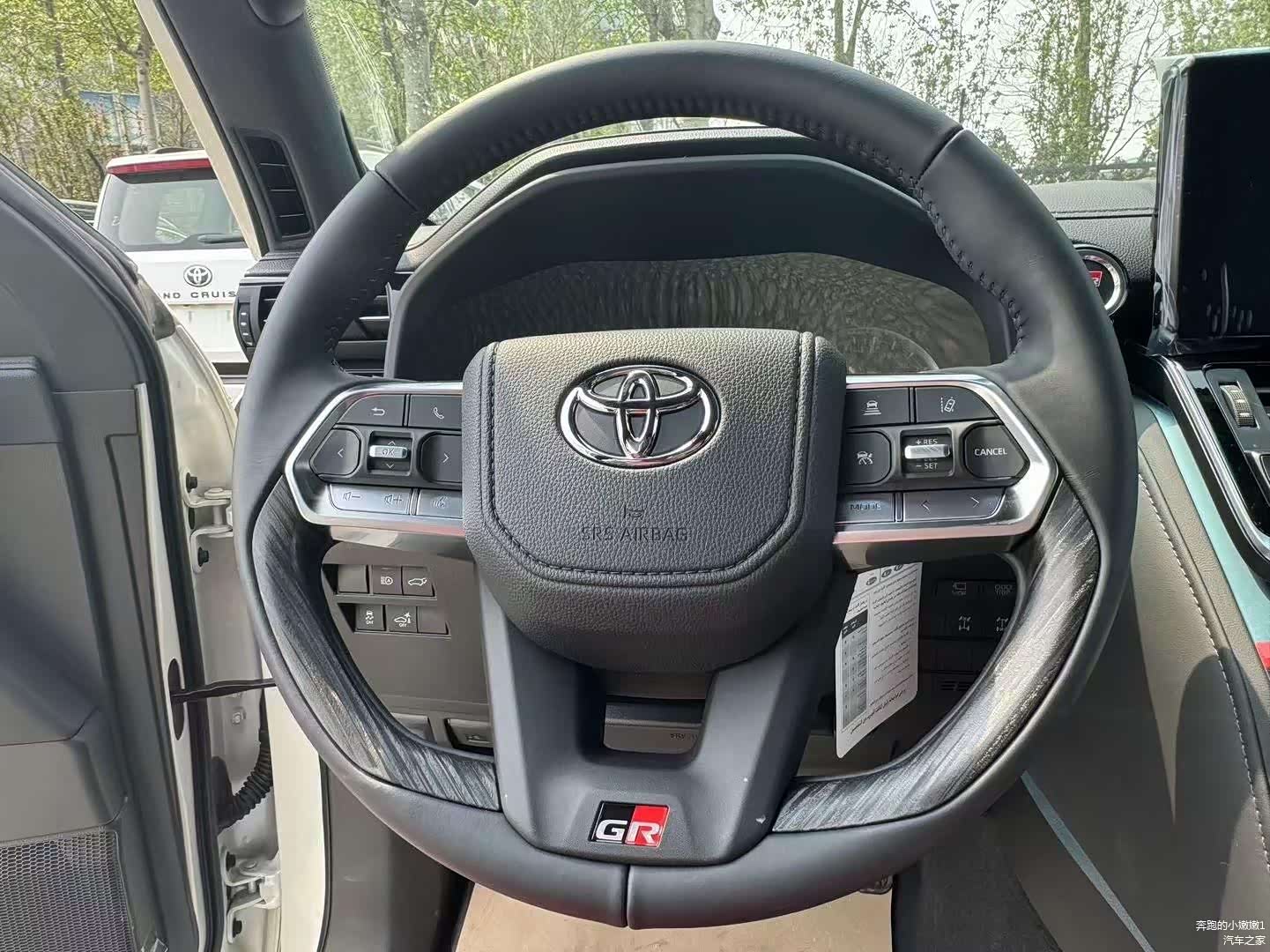 24款中东版丰田LC300 3.5 TT GR SPORT 天窗、抬显、后娱、雷测、JBL、遥控启动、蠕行、坦克调头、六种驾驶模式、MTS多地形模式、车道保持+转向震动、KDSS悬挂系统、车辆动态管理、360环影带清洗、前4后4电眼、倒影、三把差速锁、预碰撞系统、盲点检测、刹车辅助、GR一键启动、GR18越野轮、10气囊、冰箱、真皮运动豪华座椅、前后排通风加热座椅、前排电动座椅、电动座椅垂直调节、第三排电动座椅、四区空调、无钥匙进入、电尾门、GR桃木真皮方向盘、自动远光灯、大灯清洗、GR智能钥匙、GR头枕、桃木内饰、7寸仪表盘、12.3寸大屏、GR中央显示屏、GR蜂窝状中网、GR前后保险杠、GR丰田logo、GR侧面新设计条纹、GR侧踏板、GR前丰田徽章、黑色行李架、黑色门把手、黑色后视镜、黑色轮眉、底挂备胎、拖车钩、无线充电、车门门控标志照明、野营灯、车顶扰流板带OE+LED 私聊价
