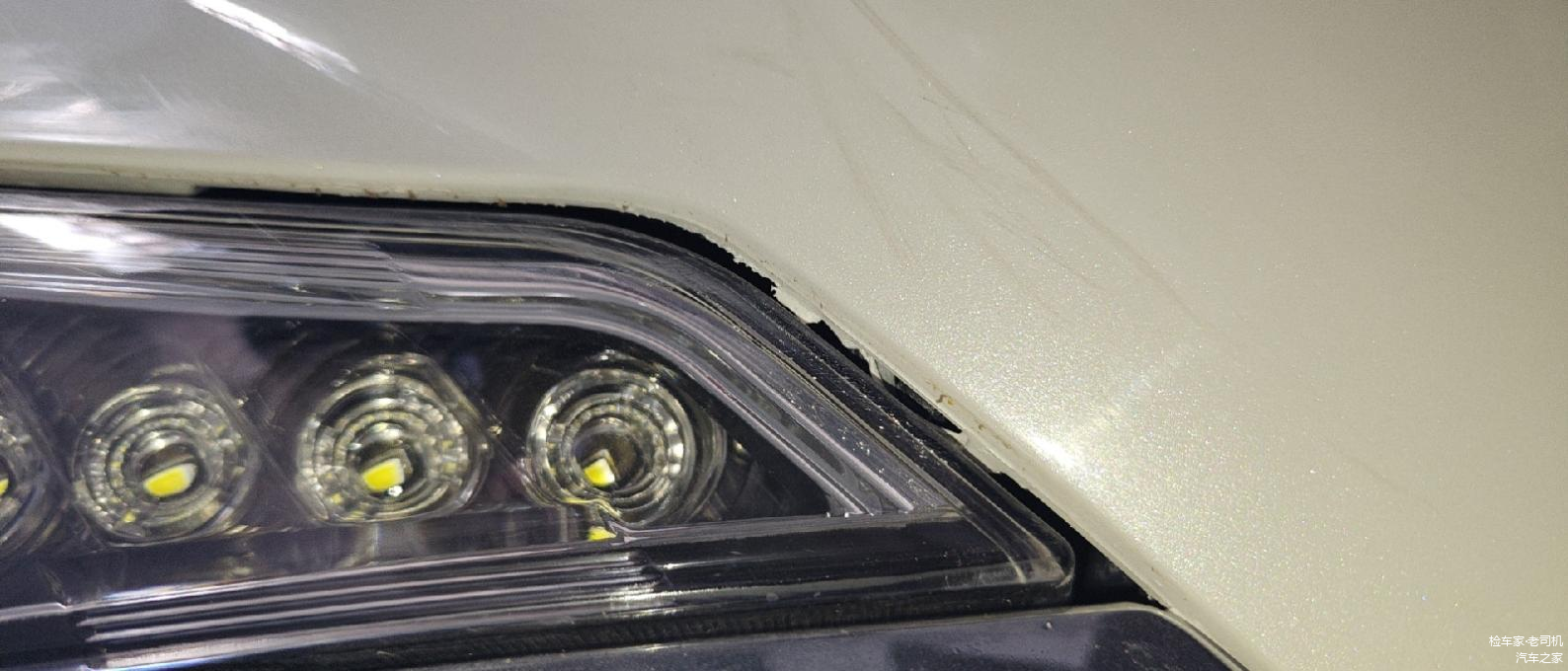 看前保险杠的边缘,毛刺都要飞出来了,可见前杠更换了,后换的配件非常廉价。