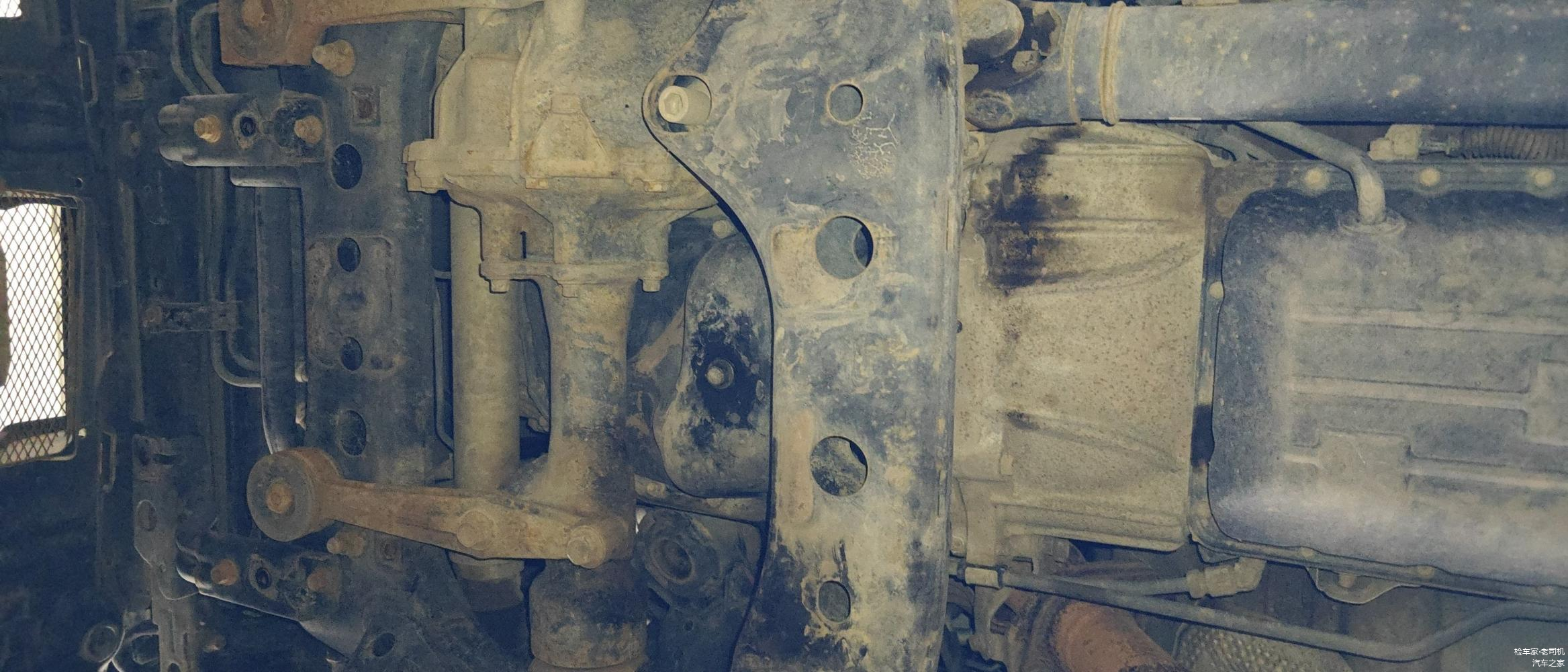 还好,水箱框架并未有拆卸焊接痕迹,那就说明车头前面问题不大。不过需要防备这种车的越野事故,例如侧翻什么的,会对四梁六柱造成不可逆的伤害,所以慢慢往后看。