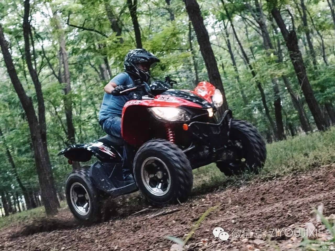 驾驶ATV,就更可以用骑行来形容了,它更接近两轮摩托车的操作方法,车把式转向带来了更多的身体动作。也需要不断的通过身体重心,来配合车子的行驶状态,而且,骑ATV也需要压弯哦~