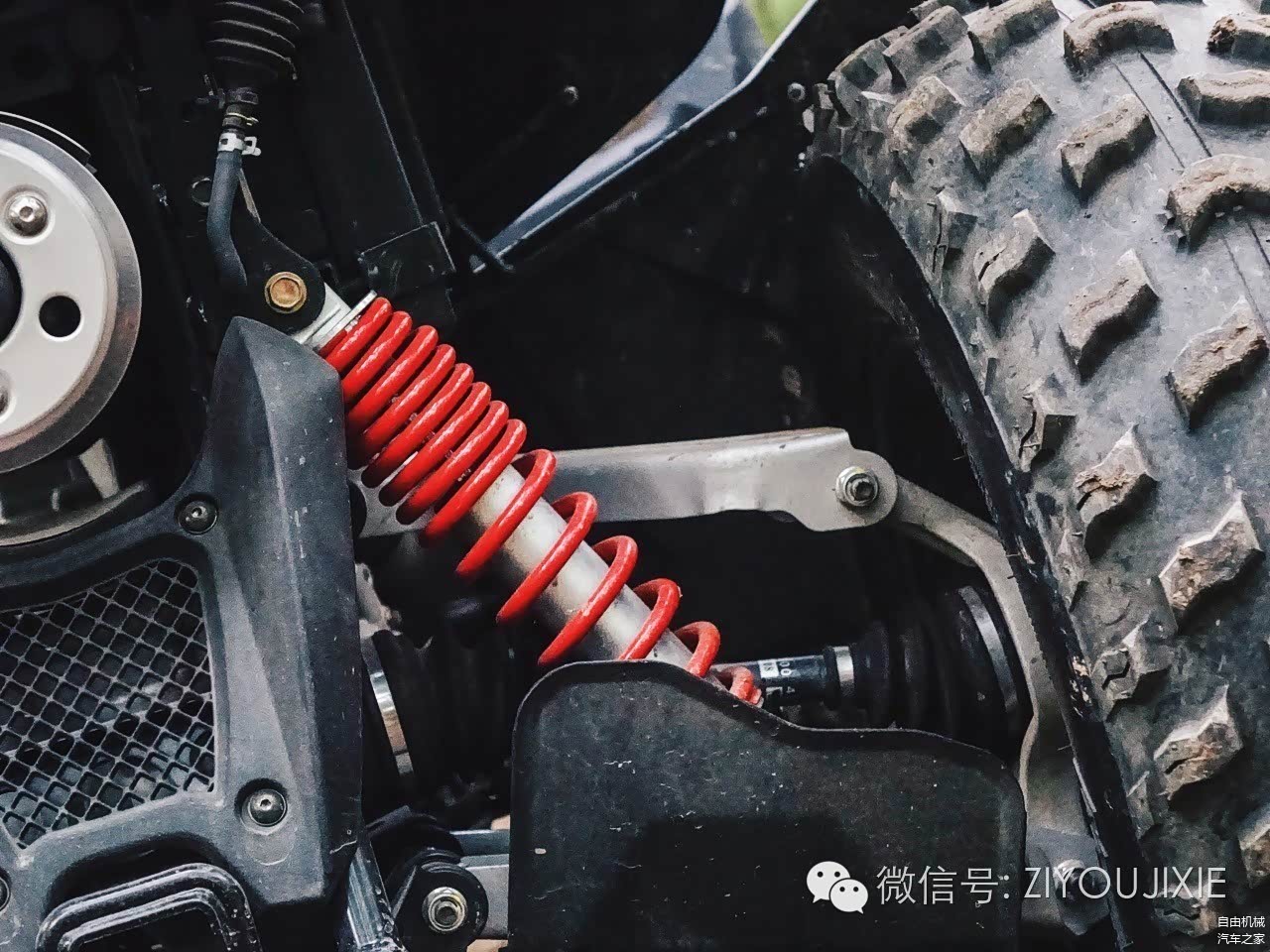 除此之外呢,它的前后悬挂系统都是双A臂结构,最大行程17.8厘米,依然采用同心式减震设计。