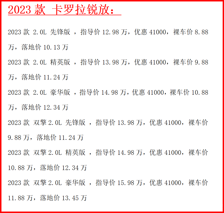 买 卡罗拉锐放(图片 | 参数 | 询价),落地价超过这个数,你就是买贵了!5月份卡罗拉锐放落地需要多少,哪个配置卖的最好,真实油耗你是否知晓?看完这篇文章,答案让你清晰明了。