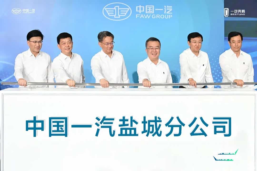 来自盐城市委市政府、中国一汽、一汽奔腾、盐城经济技术开发区、江苏悦达集团的领导亲临现场,见证了这一重要时刻。盐城市委市政府主要领导,中国第一汽车集团有限公司董事、党委副书记王国强,一汽奔腾汽车股份有限公司董事长、党委书记杨虓,一汽奔腾汽车股份有限公司总经理、党委副书记孔德军,共同启动中国一汽盐城分公司投产暨首车量产仪式。