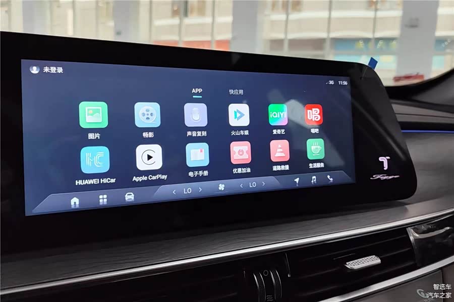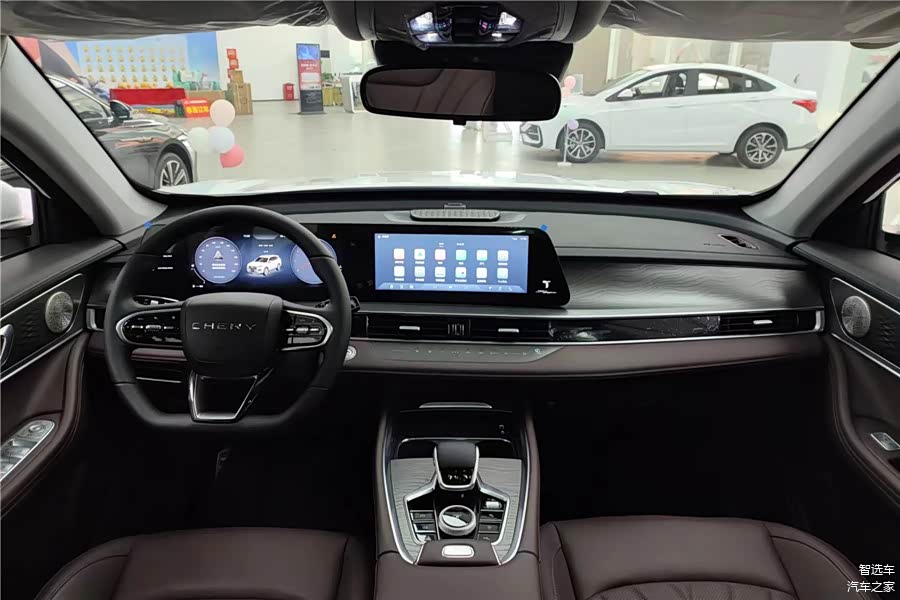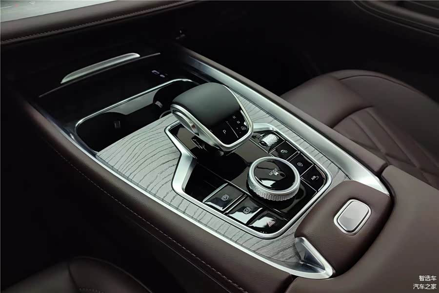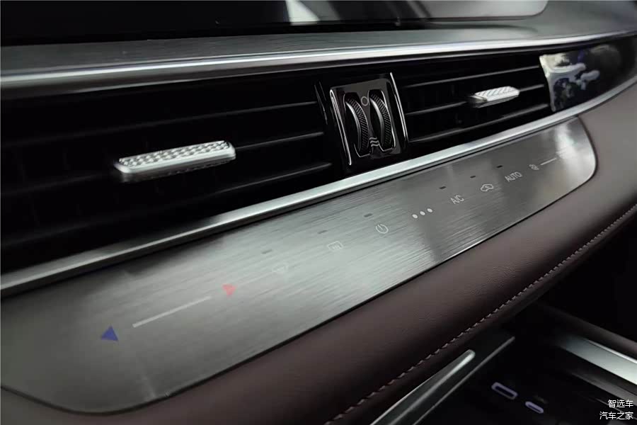 坐进车内,实拍的展车是2.0T五座版,采用了棕色内饰,豪华感营造得相当到位。除了大面积的软包之外,中控台采用了大量的银色饰板,空调控制区域则为触控按键,并采用了金属拉丝工艺。