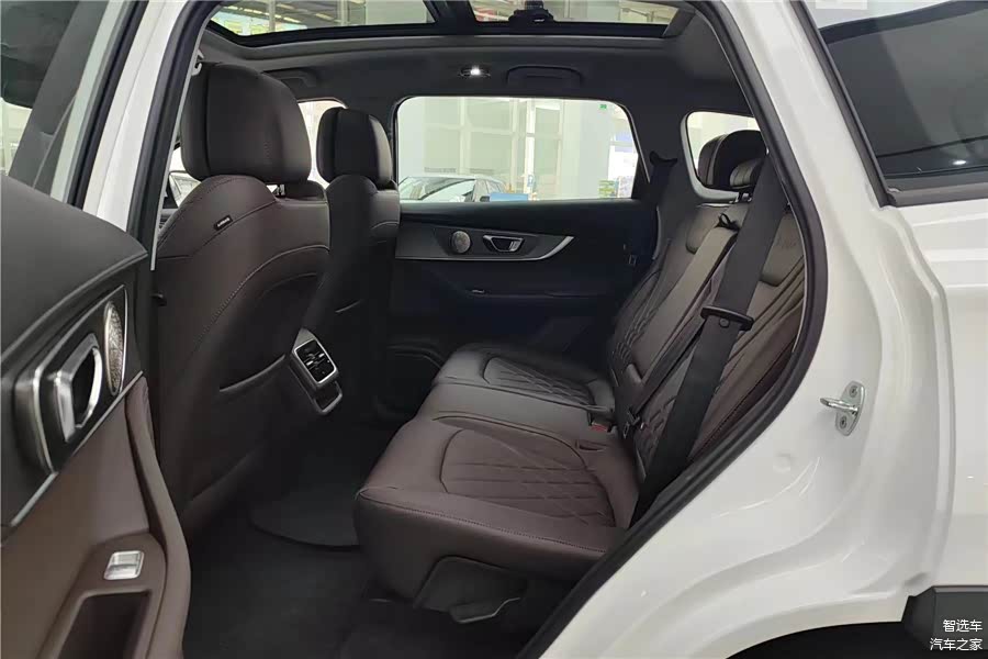 说到空间,得益于超2米7的轴距,奇瑞瑞虎8 PLUS冠军版的乘坐空间很宽敞,后排中央地台虽然略有凸起,但是几乎不影响乘坐。而且即使是五座版,第二排座椅靠背同样支持角度调节,调节拉手就在坐垫的侧面,很方便。
