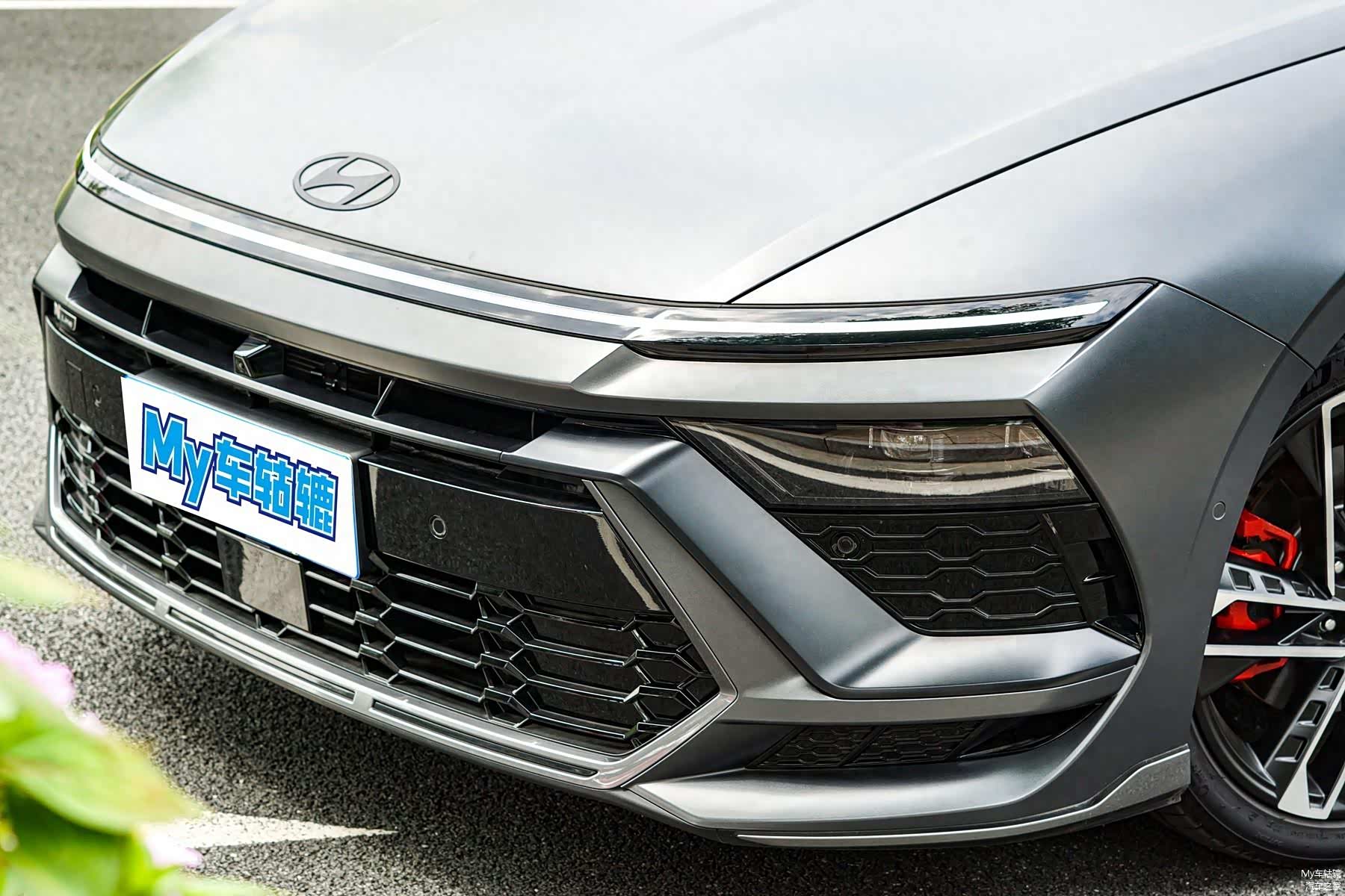 轱辘哥实拍的这台车是N Line版本,加强了性能味,保留了原来的未来冲击感。据了解,第十一代索纳塔以星际战舰为灵感,整车呈现出科幻、前卫风格。车头造型低趴,蜂窝状前格栅熏黑后更显运动感,贯穿式地平线灯组集成了流水转向灯与迎宾光效。