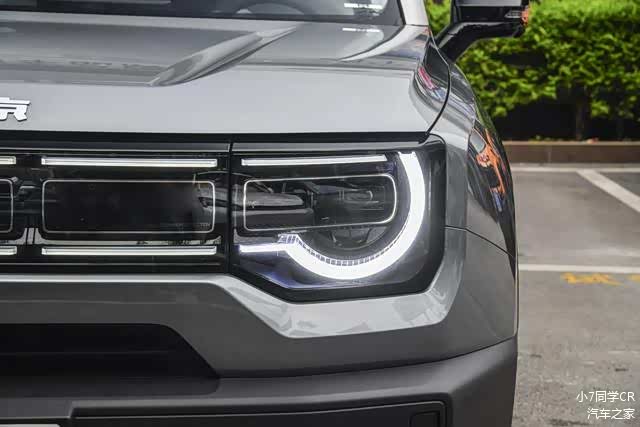 外观设计部分,全新北京BJ30前脸采用了贯穿式环形前大灯组(左右两侧大灯+中间三段发光式前格栅),并且灯组下方还布置有小尺寸梯形进气口。此外,新车还配有造型硬朗的熏黑+银灰色前包围套件,进一步增强前脸的硬派属性。