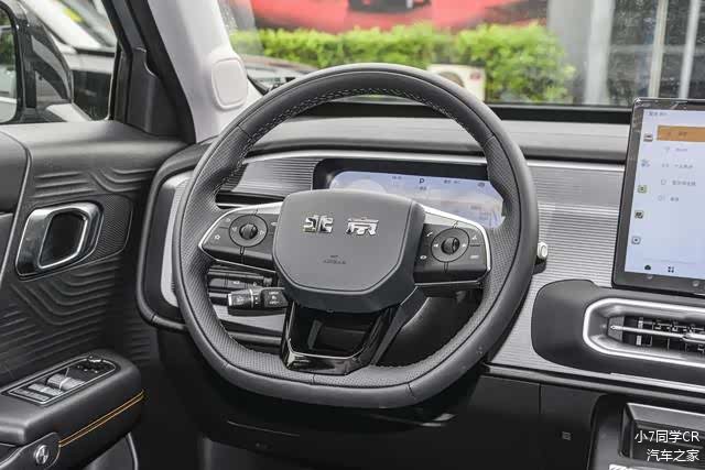 内饰设计部分,全新北京BJ30中控台要区域搭载了三幅式平底方向盘、10.25英寸液晶仪表、14.6英寸悬浮式中控屏。