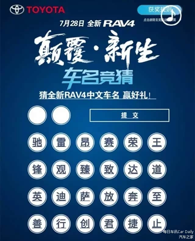 荣放?荣我放个P?此名一出,立即被众人吐槽。为此,一汽丰田还搞了个车名竞猜活动,情看下图。