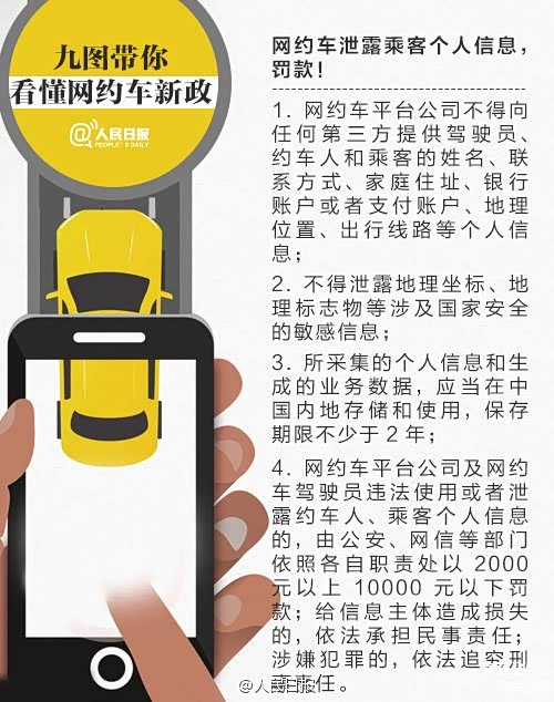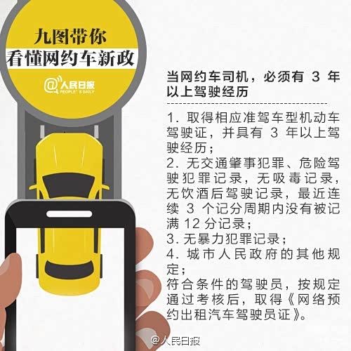 新浪微博@人民日报在昨天上午发布微博【九图带你看懂《网约车新政》】,寒霜我逐条分析,看看这些条款背后的目的都是什么。