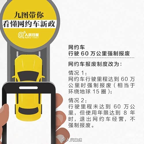 情况一:网约车行驶里程达到60万公里时强制报废(相当于环绕地球15圈)