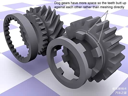 普通自动变速箱中的多片离合器,摩擦片之间允许存在转速差,换挡的一瞬间可以避免发动机动力的流失。而狗牙离合器则不同,在9AT中采用狗牙离合器的档位上,动力的传递是依靠两个狗牙齿轮的咬合实现的,这种离合的原理造成了“要么合、要么分”的状态,而没有中间过渡,优点是动力传递效率高、结构简单且体型紧凑,缺点就是对控制软件和加工工艺的要求非常高,且在两个齿轮接合时,会不可避免地产生动力的中断。