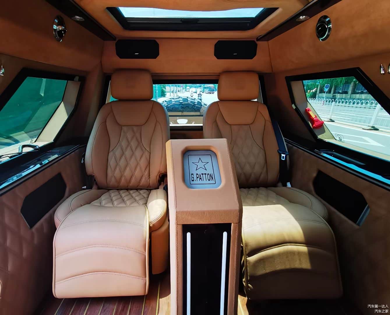 乔治巴顿单由外观设想它的内饰风格,乔治巴顿的车内布局一定会被想象成战车那种简约硬朗的驾乘风格,但是当您拉开车门,车内所展露的豪华设施定会为之而惊讶内饰,座椅纯手工缝制,看上去非常舒服,有着一种优雅古典的格调。