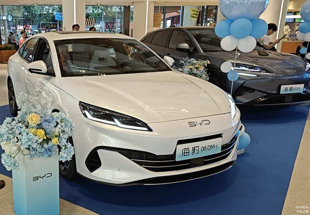 目前海豹06 DM-i的展车已经陆续到全国各大海洋网经销店,工作日早上前来看车的客户还挺多的,大部分冲着新上市的海豹06 DM-i而来。销售表示,从28日晚上市到31日早上,店里的海豹06 DM-i已经有38批的订单。