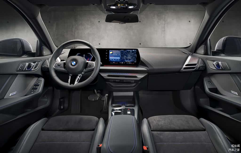 内饰方面,新款1系配备了10.25英寸的数字仪表盘和10.7英寸的信息娱乐显示屏,这两块屏幕被集成在一块单一的曲面面板内,运行宝马最新的iDrive 9操作系统,并支持Apple CarPlay和Android Auto连接。宝马还简化了中控台,去除了大量实体按钮。