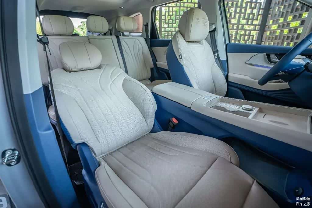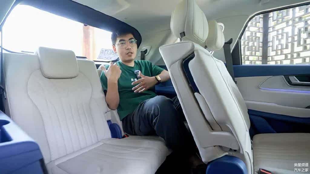女王副驾自然也少不了,腿托是必需品,坐垫腿托最大开启角度可达 128°,坐垫靠背最大开启角度高达 125°,和主驾同样享受 10 点按摩,妥妥的「女王位」。