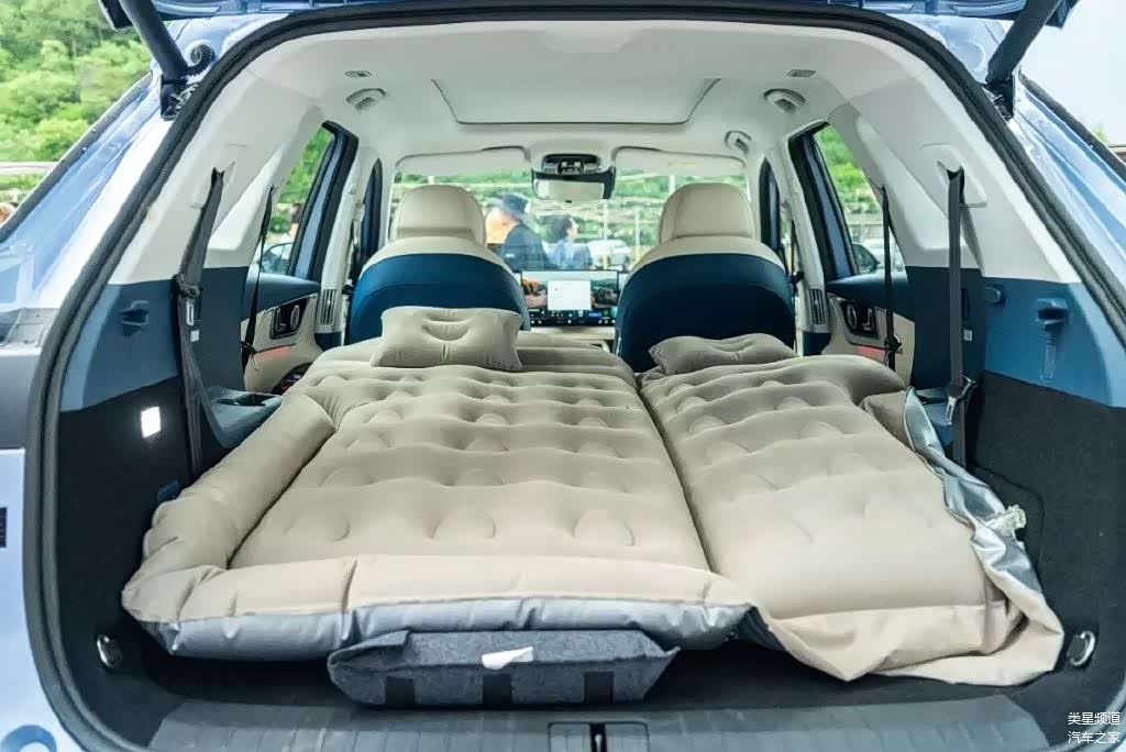 后备箱内可以将二三排座椅一键放倒,变成一个 2.1 米的大床,配合 6.6 kW 的外放电,简配版房车轻松 GET。当然,整个后备箱也可以变成装 30 个行李箱的空间,可谓搬家利器。