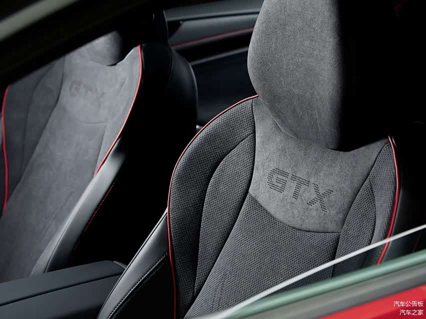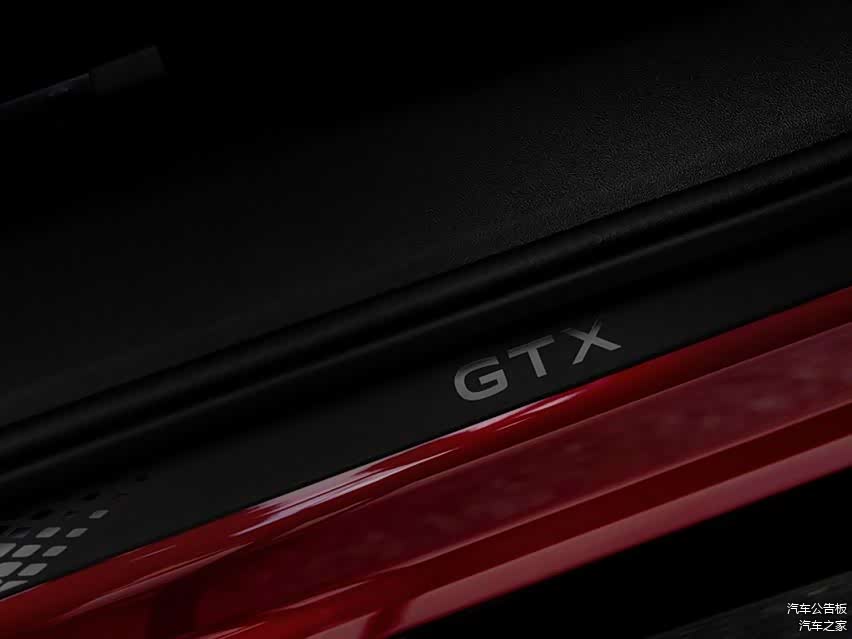 车侧整体造型也是如此,不过其配备的GTX车型专属熏黑五辐轮圈,还是能看出它的与众不同。另外,新车的车顶也采用了熏黑的设计,撞色的设计不仅看上去更时尚,同时也让整车拥有了更为低趴的视觉效果。细节方面,新车后视镜下方还有GTX徽标。