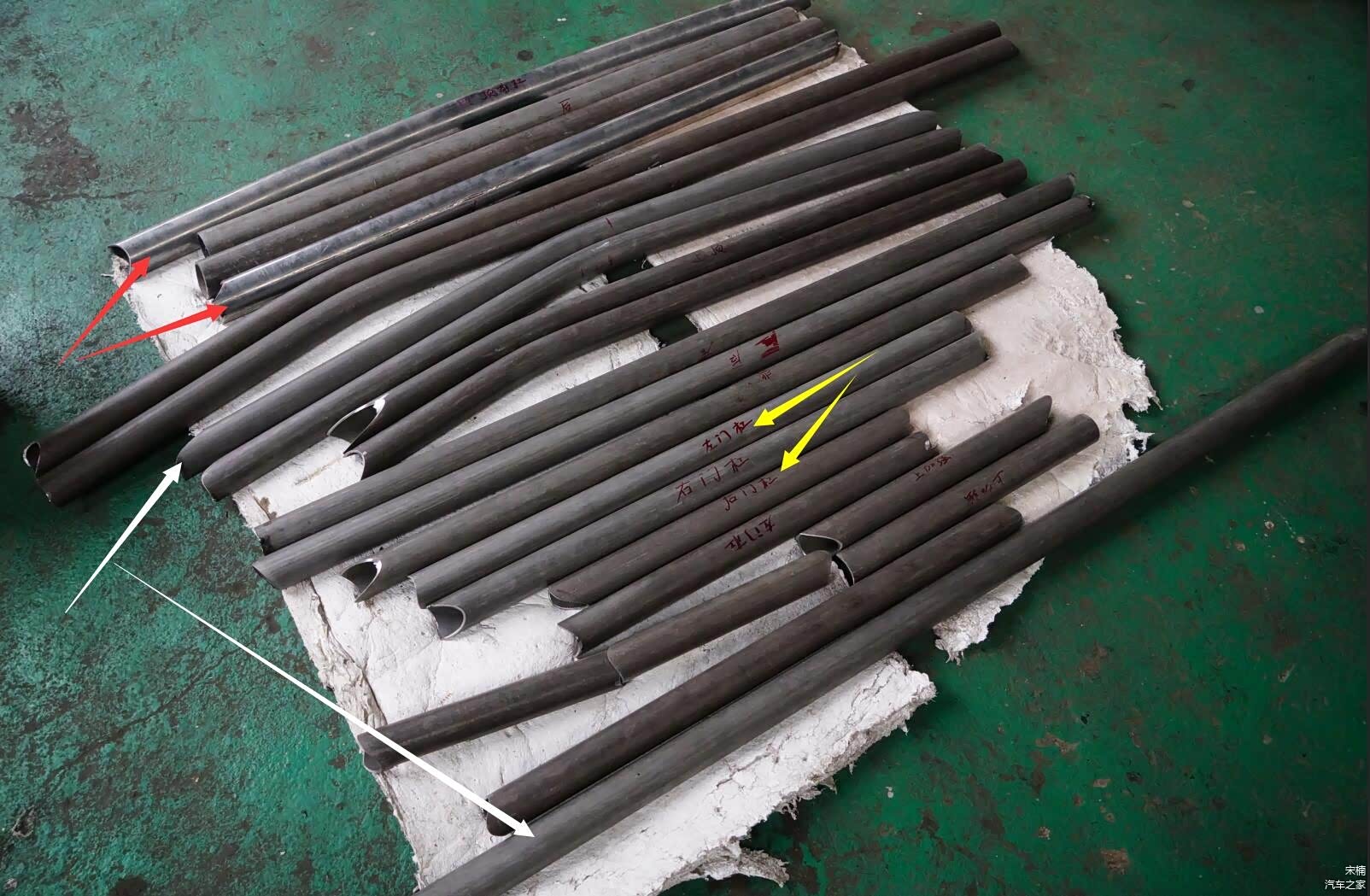 白色箭头:次一级强度的钢管,用于4车门和驾驶舱等位置。