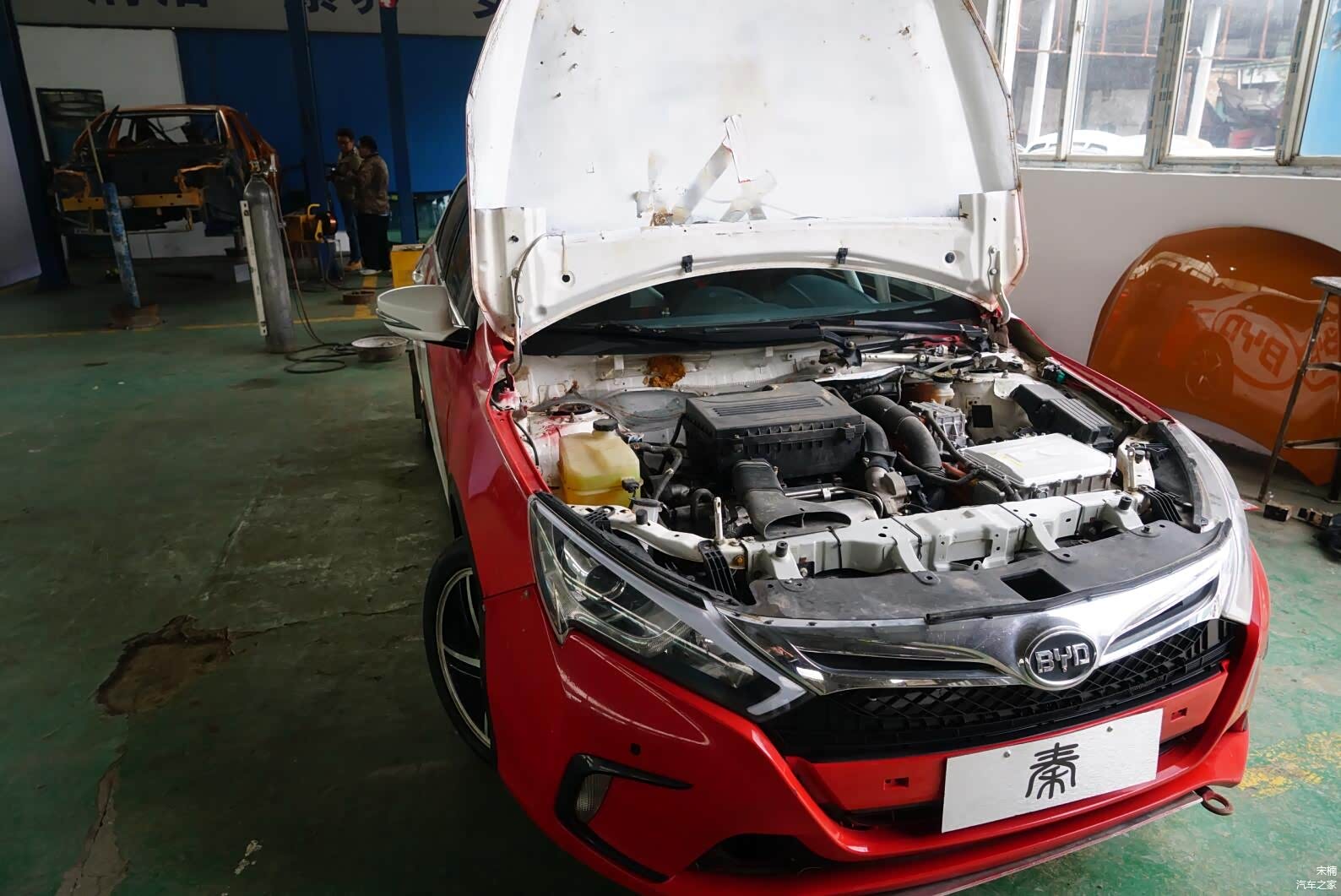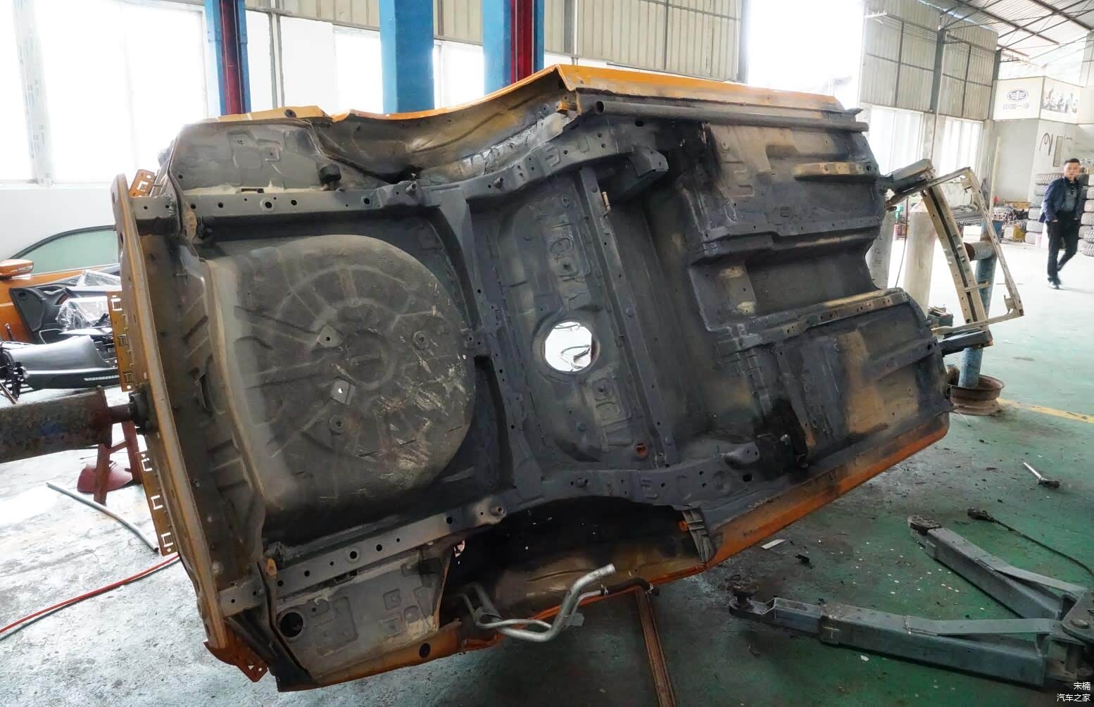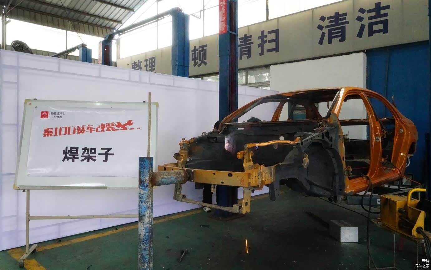 接上篇:《宋楠:续航100公里更换独立悬架比亚迪秦》。重大改进版秦(以后简称秦100)拆除了包括动力总成、T型电池组件、焊接附件、内部装饰件以及其他分系统后,开始对车身结构进行重点补焊和防滚架的预安装。