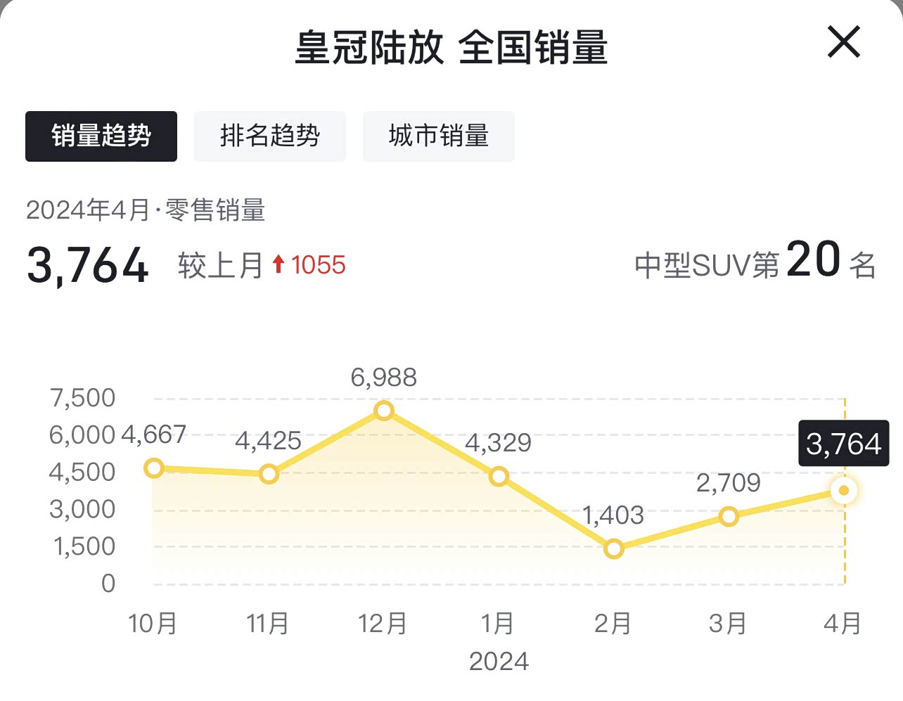 现在优惠个5万多块钱,就想骗你入手皇冠陆放,千万别上当啊?四月份,皇冠陆放卖了3764辆,这销量成绩不算很优秀,但也正因如此,皇冠陆放的价格终于降下来了!那么现在入手皇冠陆放,多少落地才能搞,哪个配置卖的最好,真实油耗又是多少?看完这篇文章,答案让你清晰明了。