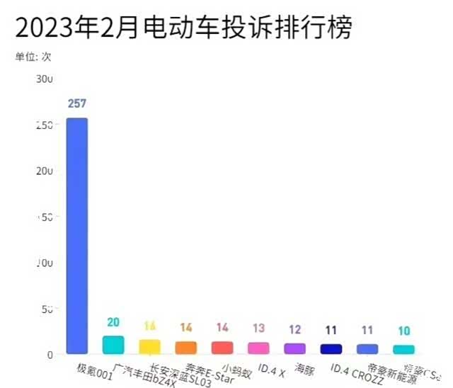 在车质网2月电动车投诉榜中,长安深蓝SL03位居第三,产品去年开始交付,投诉这就跑到行业前列,确实不寻常。