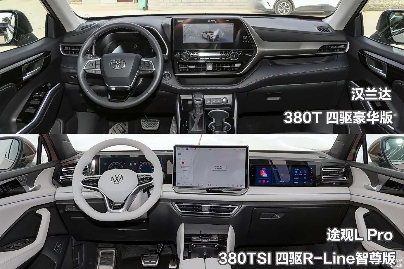 今年5月末,燃油中型SUV市场迎来两位知名选手——丰田汉兰达与 大众途观L(图片 | 参数 | 询价)。正好,本期就来选取汉兰达380T四驱豪华版与途观L Pro 380TSI四驱R-Line智尊版这两款车型进行对比,看看它们各自的优势在哪里。