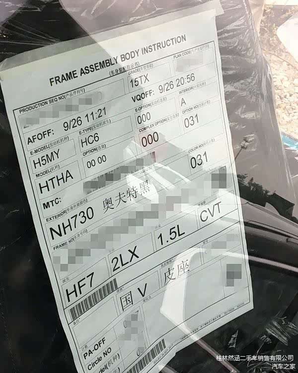 下生产日期很新就大概检查了下,一周弄完手续就提了车。9月26日下生产线,10月中旬到车,这车还真是紧俏。