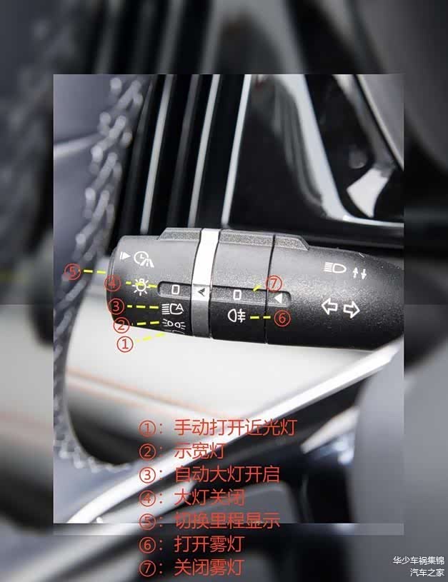 其余远近光灯、转向灯的操作与常规车辆操作无异。都是通过前后推拉上下拨动操作。