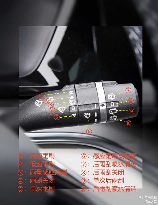 ③雨量感应雨刷:雨量感应雨刷可以根据雨的大小来自动打开雨刷,并且根据雨量自动调节速度。