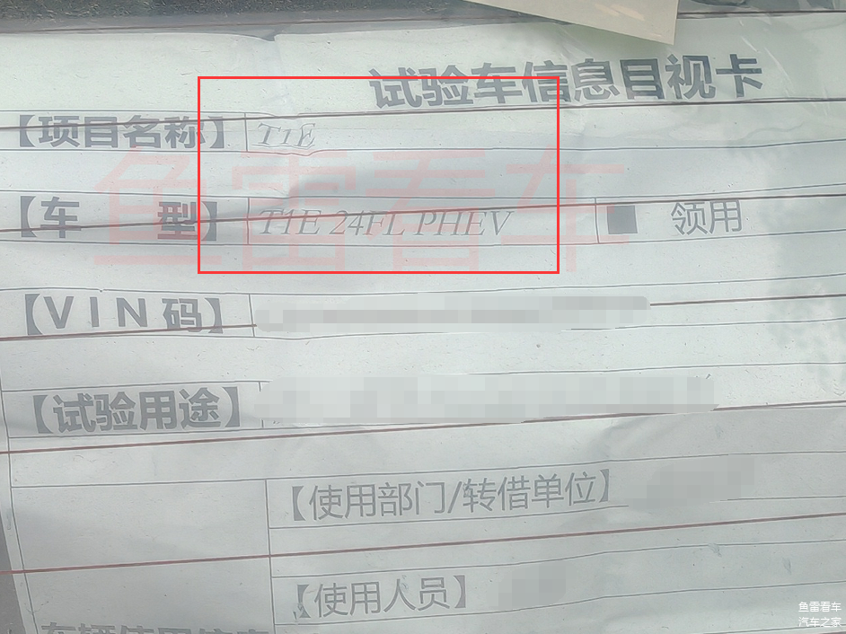 其实之后拍摄的试验车信息目视卡里也提及到了PHEV的字眼,现在才知道该车的项目编号,竟然是T1E 24FL的项目编号,说实在的这个24的阿拉伯数字组合完全不明白什么意思,好在确定是插电混动版就成,说明没看走眼。