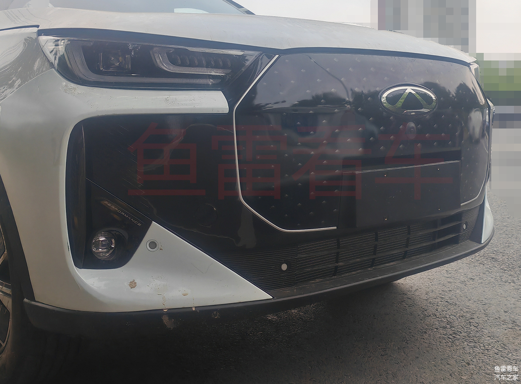 前脸造型风格和此前曝光的出口版Tiggo9(国内燃油版和新能源版分别称之为瑞虎8L和风云T9)非常接近,主要就是主散热格栅全部封闭化处理,同时雾灯框、主格栅与下端的辅助进气口全部黑化处理,形成了一张相当夸张的表情,不过这里需要强调一下的是,这是出口版的测试车,国内销售的版本不出意外格栅这一块不会这样处理。