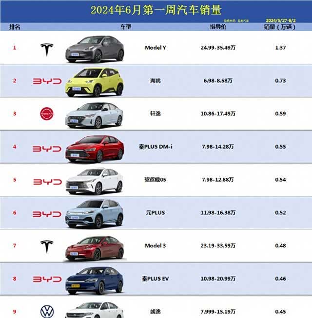 在2024年6月的第一周,中国汽车市场的销量榜再次引起关注。数据显示,新能源汽车的表现尤为抢眼,其中比亚迪的表现尤为突出,几乎占据了销量榜的半壁江山。难道燃油车的时代即将迎来终结?