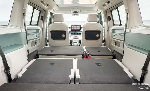 美中不足的地方是第二排并没有配备独立中央扶手,好在前方配备小桌板。坐进第三排,并不会给人一种坐小板凳的感觉,因为地台很低再加上整个坐垫长度够长,所以腿部头部都有很大空间剩余,该有的舒适性配置基本都有,在空间方面确实没有太多值得挑剔的地方。